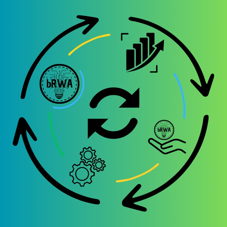 O bRWA é projetado para funcionar com receita contínua gerada por transações reais dentro da plataforma e aplicações seguras de seus fundos, garantindo equilíbrio e longevidade.